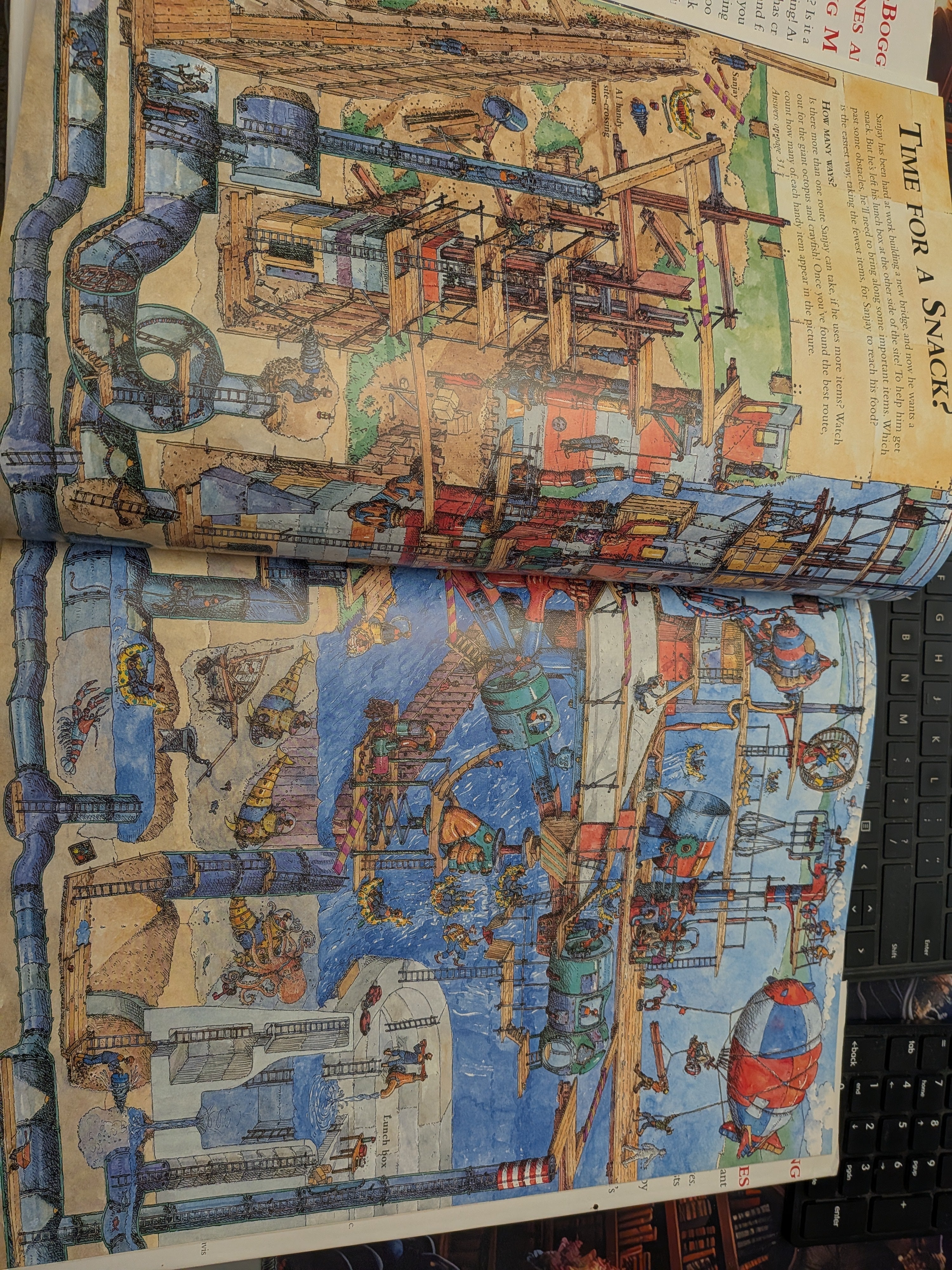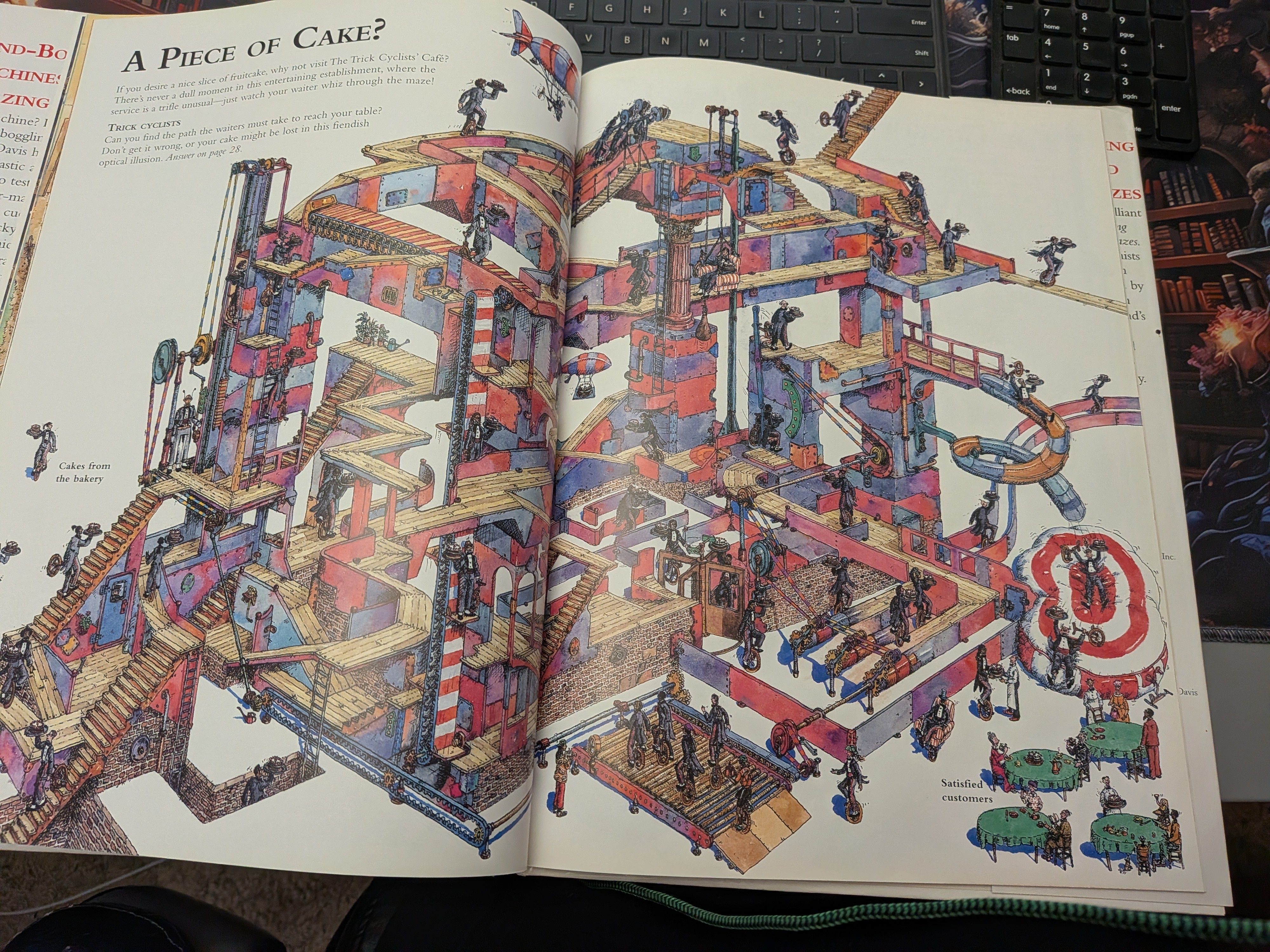 Maze puzzles challenge readers to find their way through such places as a large factory, medieval castle, and circus bigtop