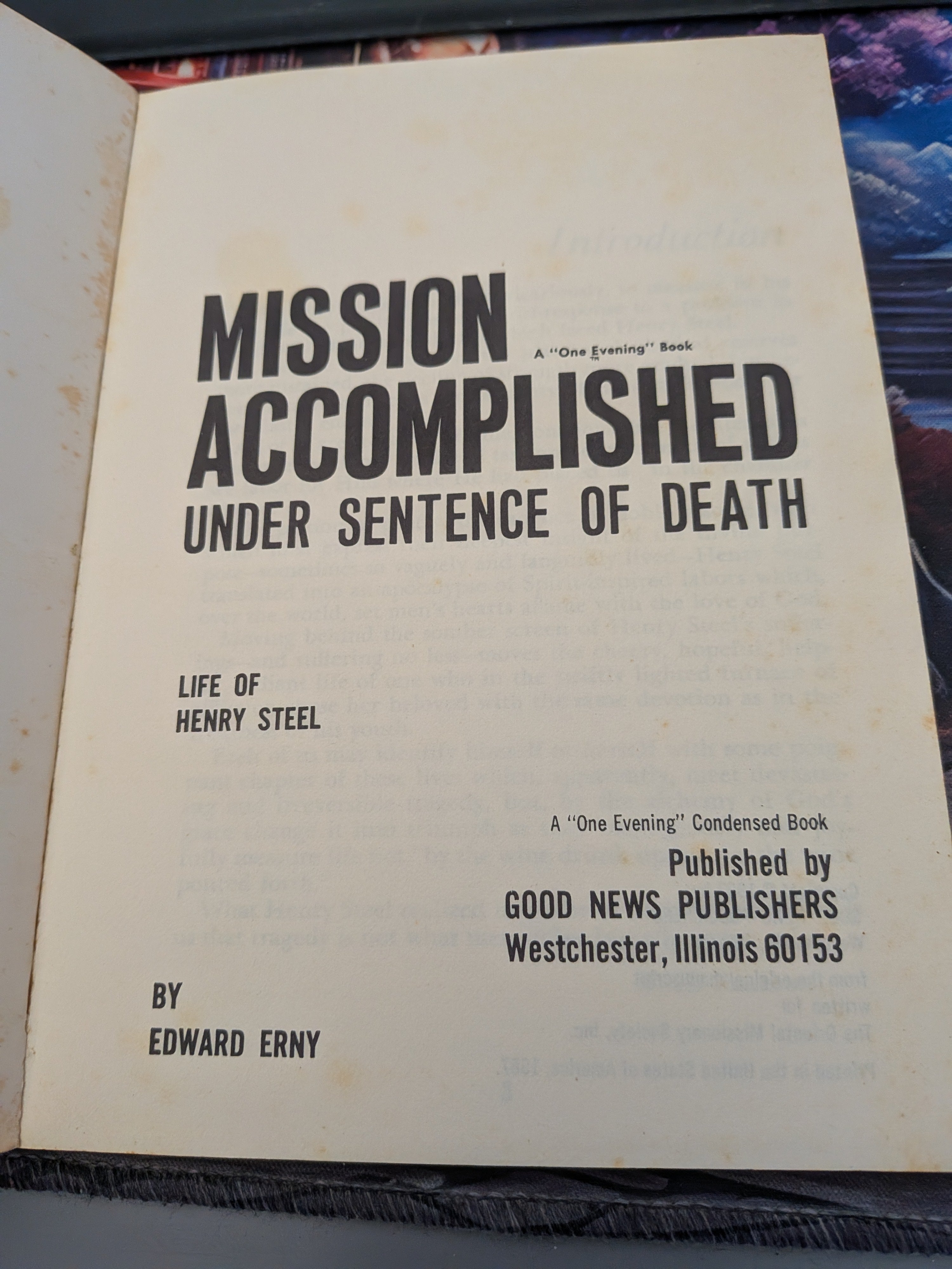 Mission Accomplished: under Sentence of Death: Life of Henry Steel (1967) GOOD is backordered and will ship as soon as it is back in stock.