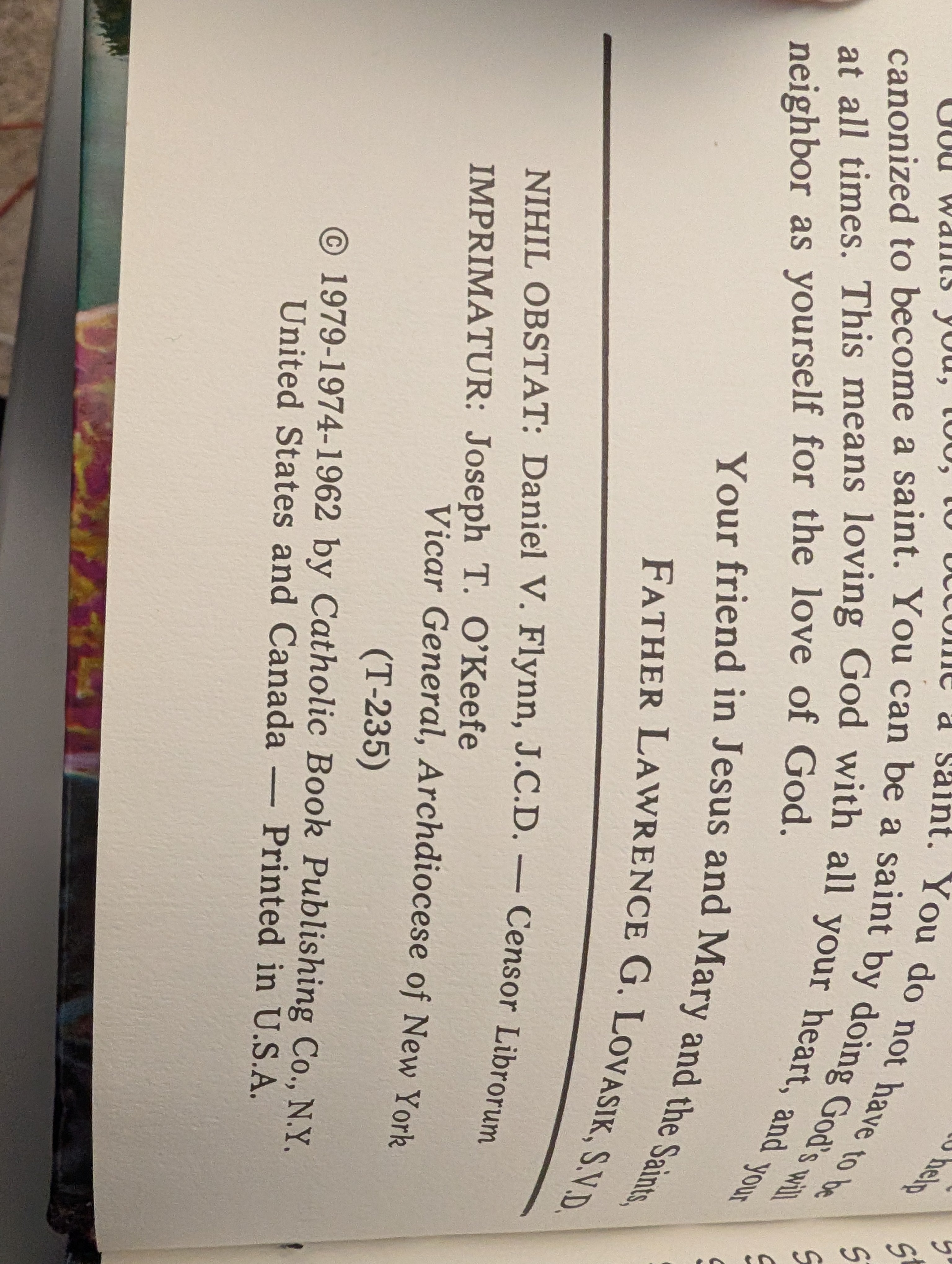Picture Book of Saints by popular author Rev. Lawrence G. Lovasik, S.V.D., recounts the lives of over 100 well-known Saints, including sixteen 21st-century Saints. Among them are Mother Teresa, Padre Pio, St. Faustina Kowalska, Pope St. John XXIII, St. Kateri Tekakwitha, and Pope St. John Paul II. Written in a straightforward, easy-to-understand style that will appeal to parents, teachers, and children, the life of each Saint in this classic and enduring Saints collection is beautifully illustrated in full color. This edition has a colorfully illustrated padded hardcover binding.
