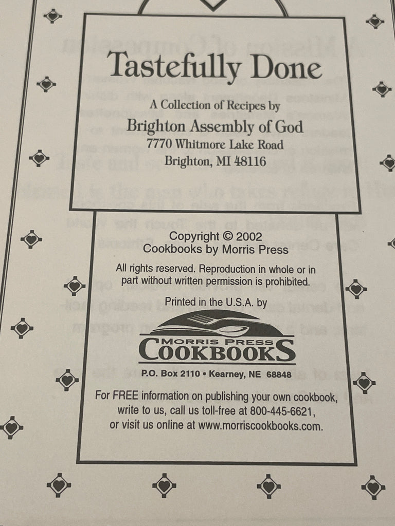 Tastefully Done by Brighton Assembly of God (2002) is backordered and will ship as soon as it is back in stock.