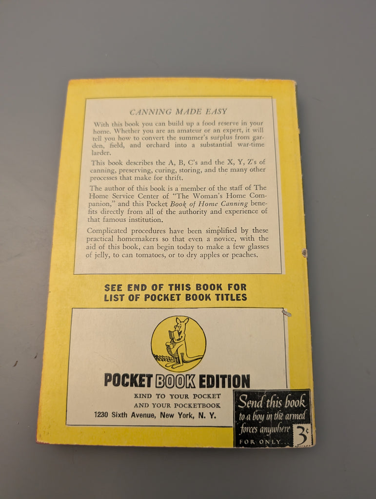 The Pocket Book HOME CANNING by Elizabeth Beveridge 1943 HTF SEE PICS is backordered and will ship as soon as it is back in stock.