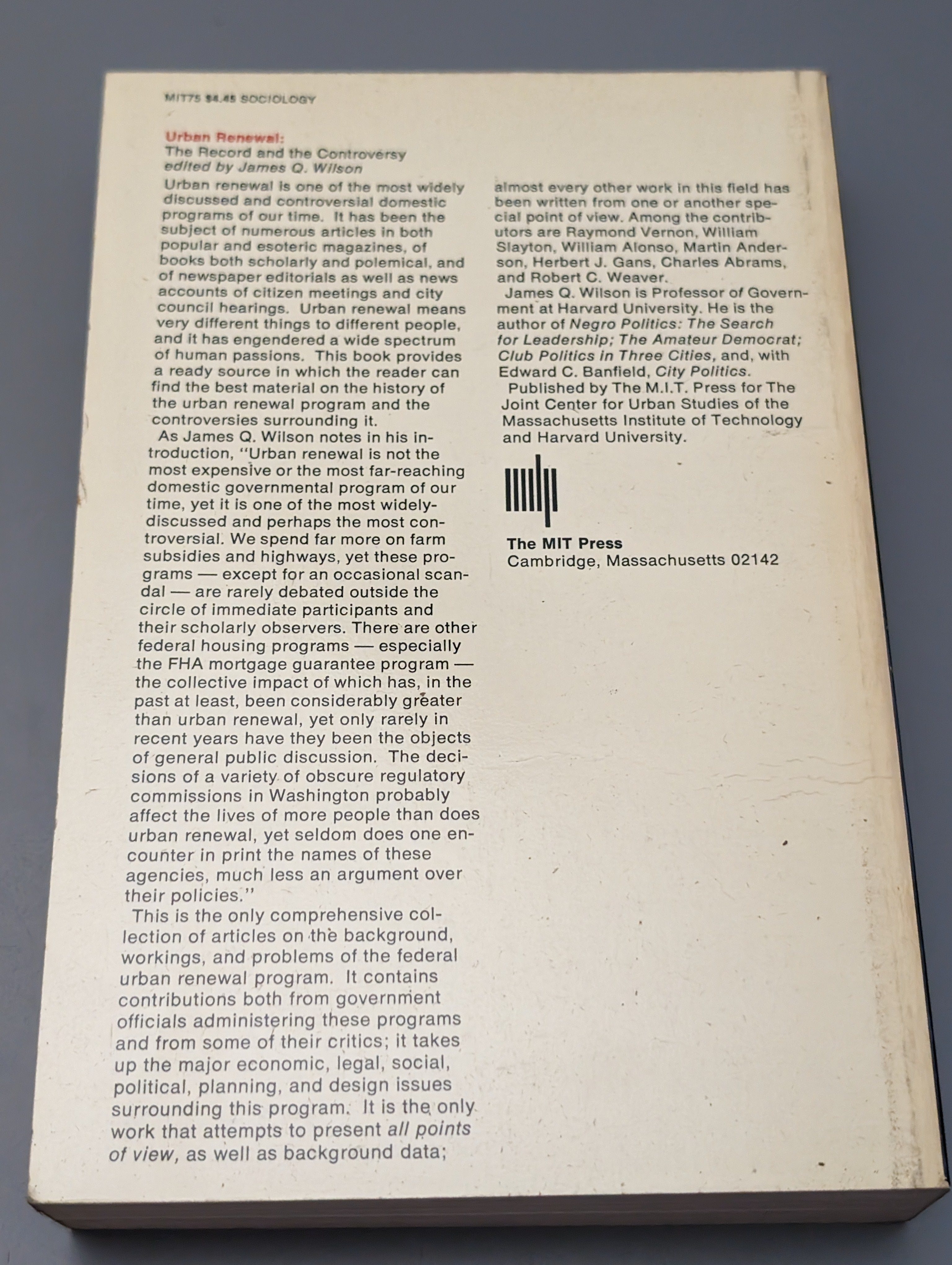 Urban Renewal: The Record and the Controversy by Wilson, James 1966 SEE PICS RARE is backordered and will ship as soon as it is back in stock.